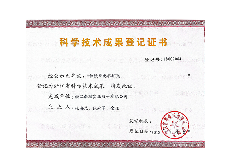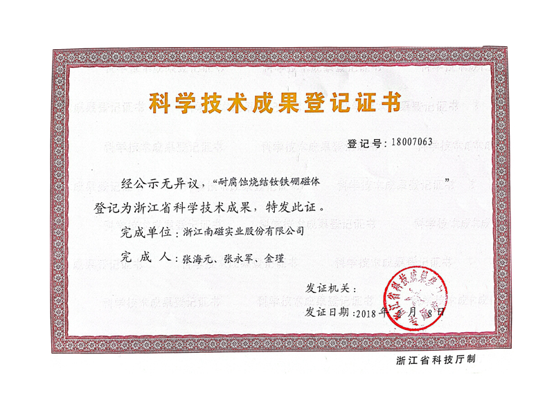 科學技術(shù)成果登記證書